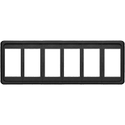 This Contura modular mounting panel is designed to hold six Contura switches in a single frame. It supports multiple panel thicknesses and allows easy expansion for marine or vehicle electrical systems.